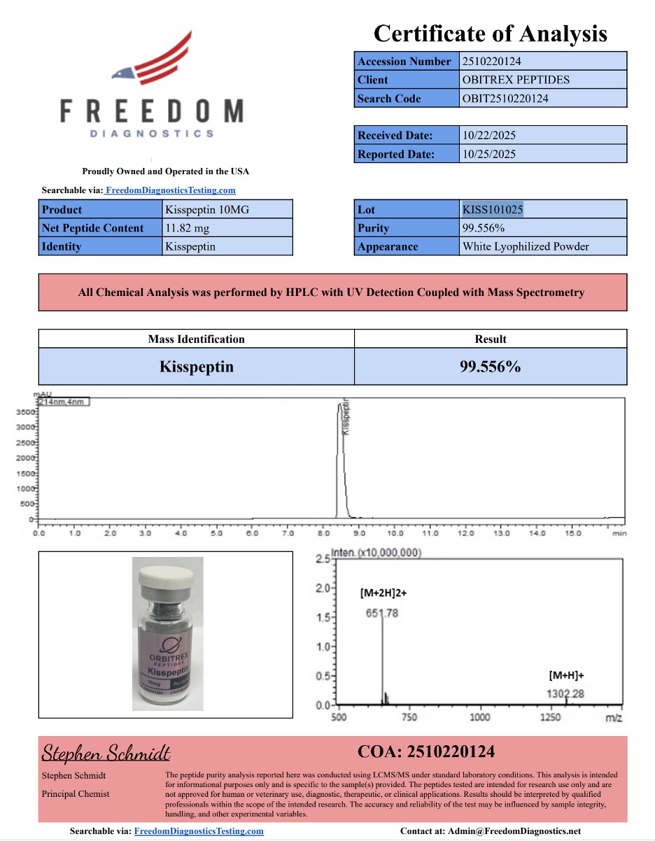 Kisspeptin is supplied strictly for laboratory research purposes only. It is not intended for human consumption, medical use, or veterinary application. All handling and research must follow institutional laboratory protocols and applicable regulations.