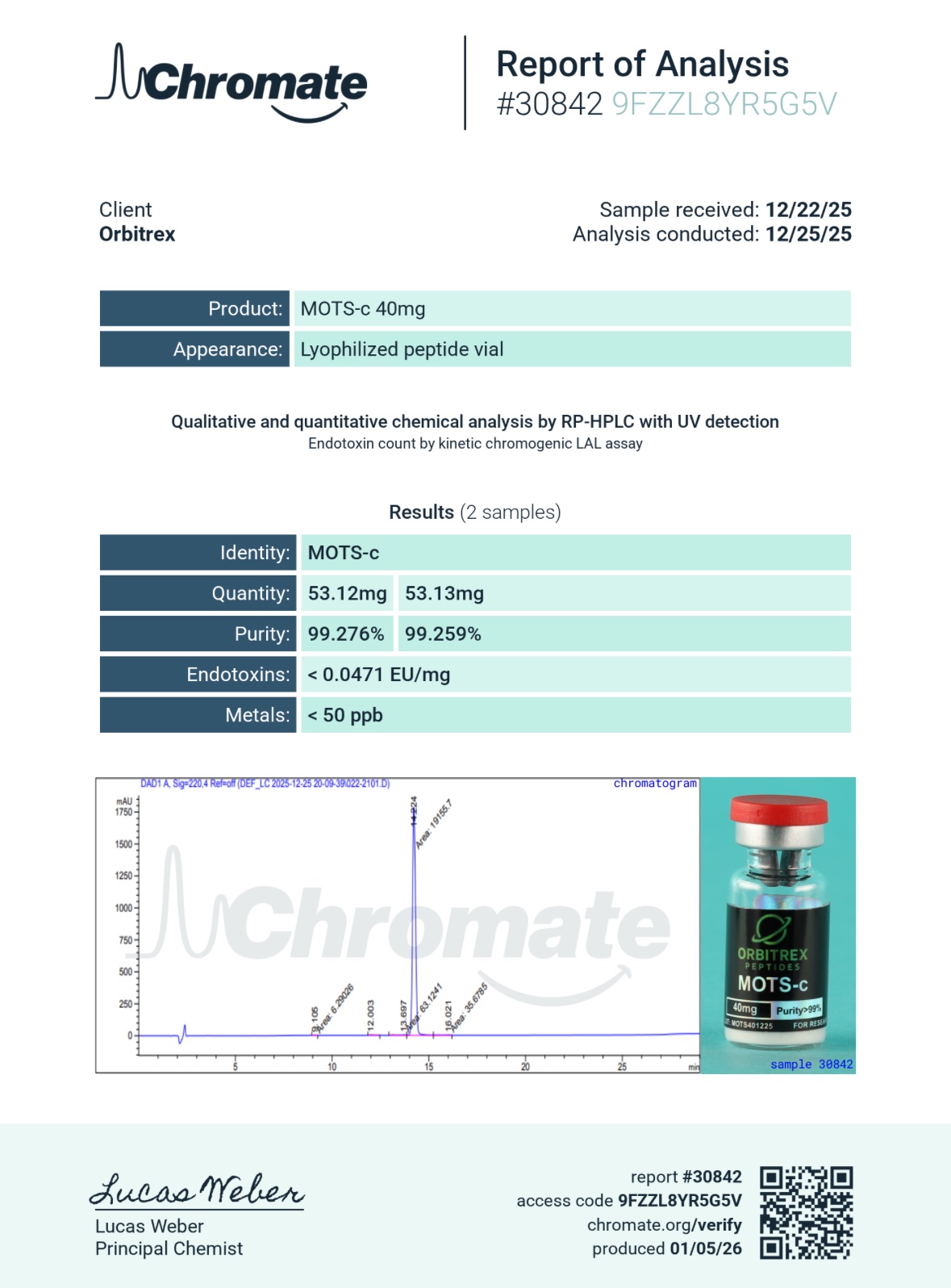 By choosing MOTS-c from Orbitrex Peptides, you are selecting a peptide that reflects our dedication to reliability, scientific integrity, and research excellence.